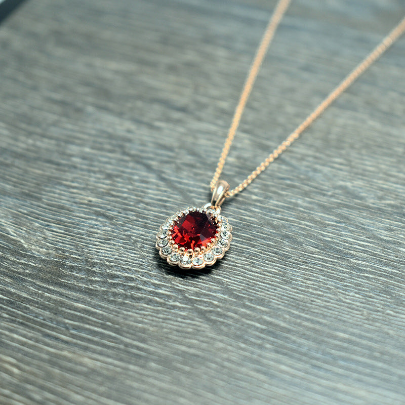 Whether emerald green, ruby red, amethyst violet, or sapphire blue – every variation of the Royal Glimmer necklace lends your look a regal sparkle. The oval center stone is framed by sparkling crystals in a delicate wreath and hangs from a fine, gold-colored chain. Ideal for special occasions or as a stylish accent in everyday life.
